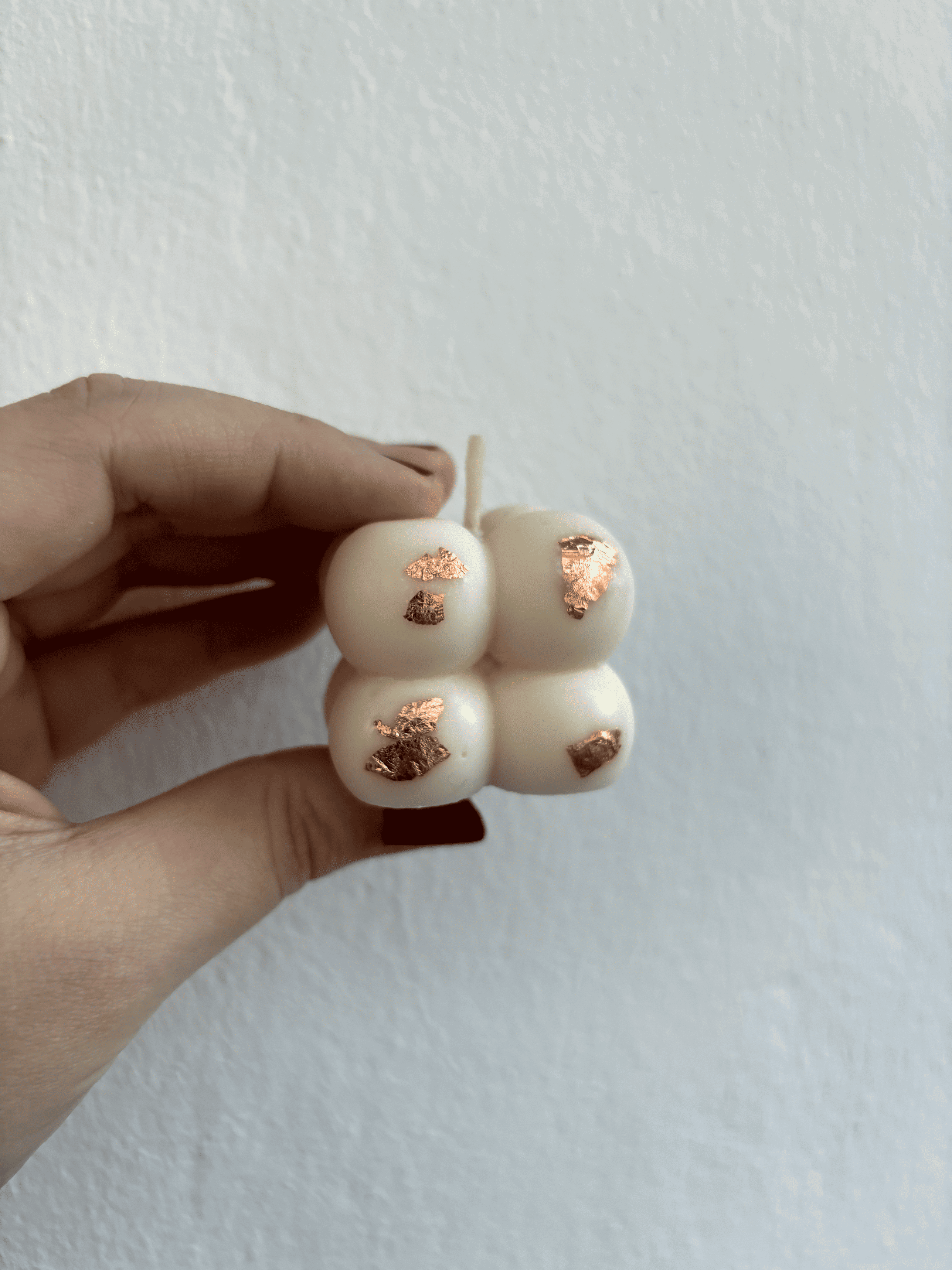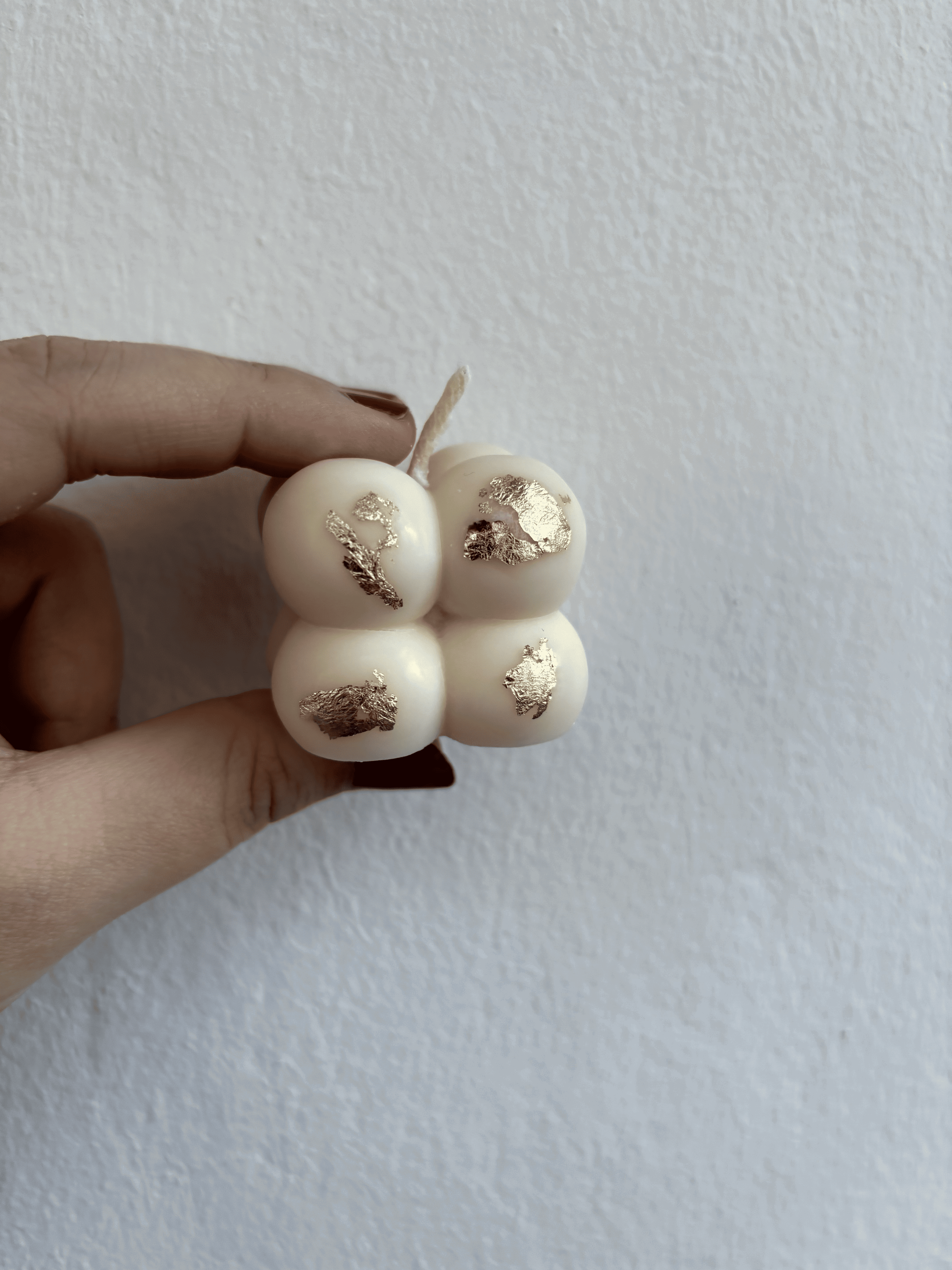 Nuestra Vela mini Bubble Golden es pequeña en tamaño pero grande en encanto. Es el detalle perfecto para iluminar un espacio no solo encendiendola sino por sud ecoracion con papeles oro en color dorado, plateado y bronce. Hecha con cera de soja 100% vegetal y un 10% de esencia pura y concentrada, esta vela ofrece una fragancia delicada pero duradera, ideal para perfumar espacios pequeños con estilo.