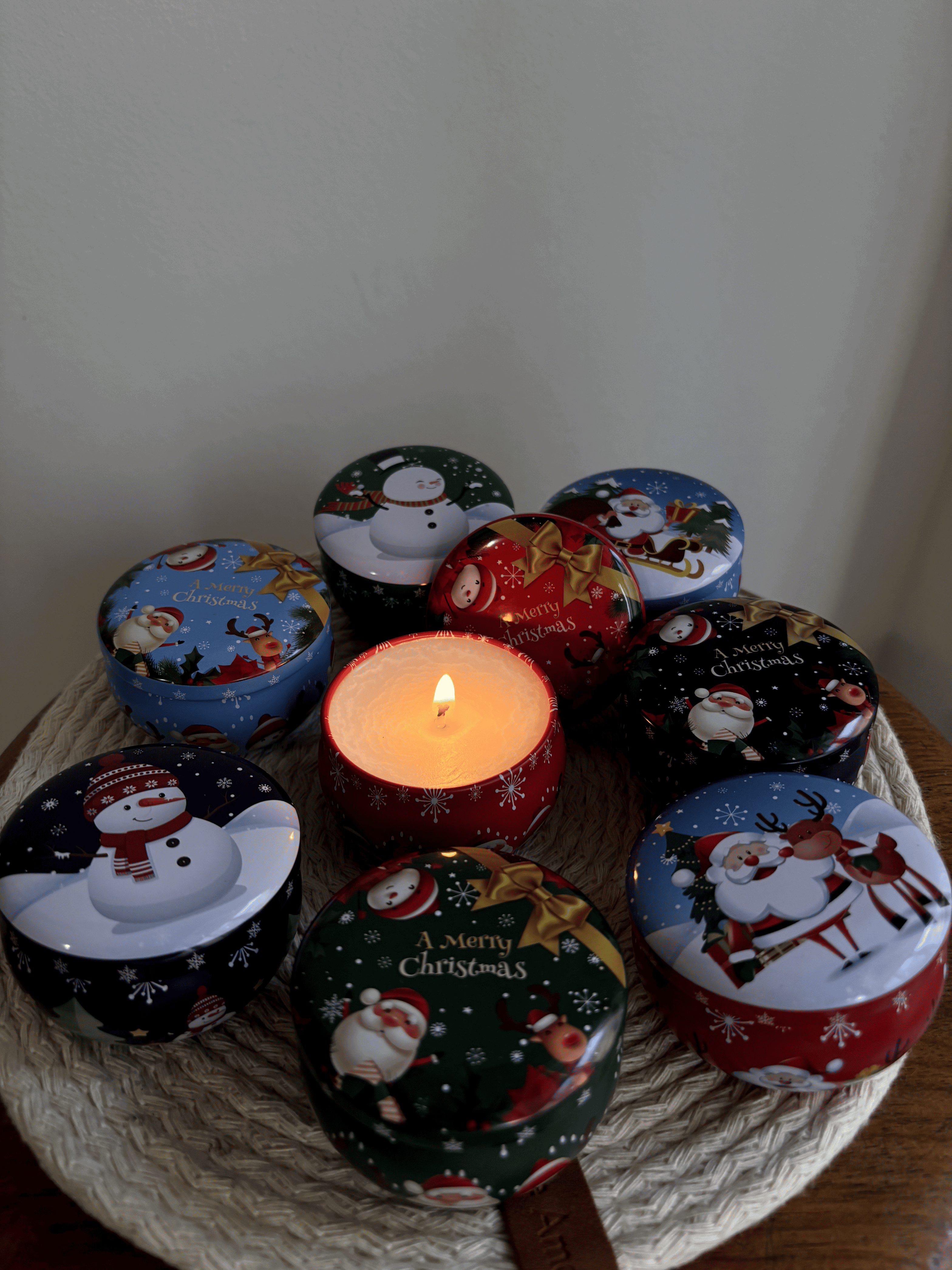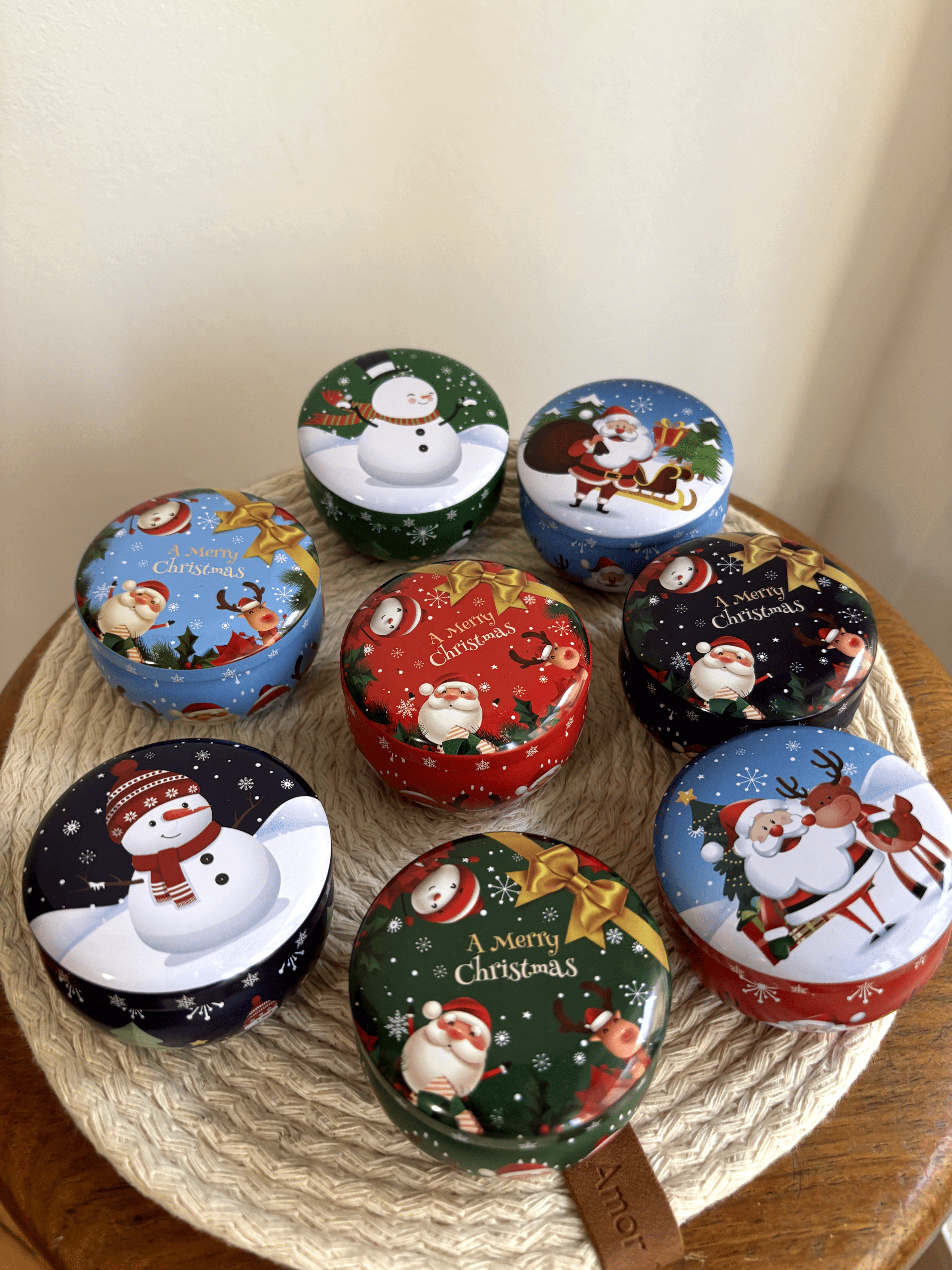 Nuestras velas en latas navideñas combinan diseños festivos y llenos de encanto con aromas irresistibles que transforman cualquier espacio en un ambiente cálido y acogedor.