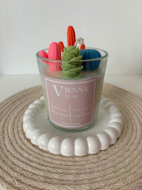 Nuestra vela Cactus decorada con cactus de distintos colores y formas es una explosión de creatividad y frescura. Cada cactus, moldeado artesanalmente en cera, aporta un toque único, combinando lo natural con lo decorativo en una pieza original que transforma cualquier espacio.