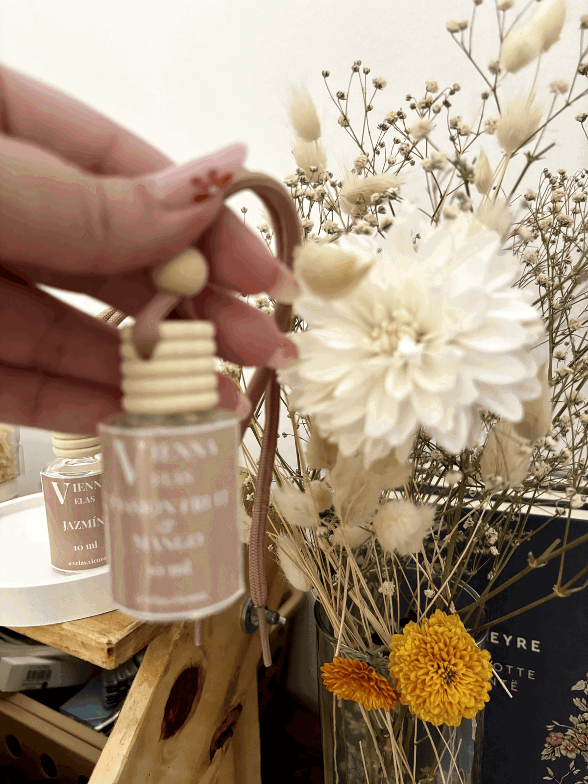Difusor de auto o placard de 8ml, elaborado con esencias puras y concentradas para brindar un aroma intenso y duradero. Su práctico diseño permite perfumar de manera constante y natural tus espacios reducidos, creando una sensación fresca y agradable cada vez que lo uses.