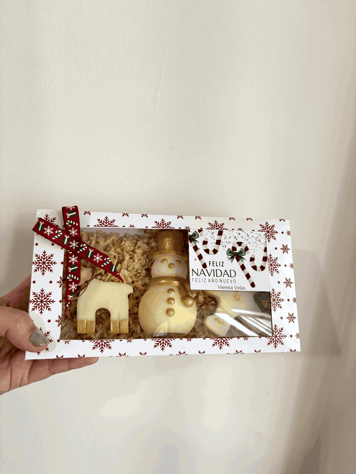 Nuestro Box Navideño reúne tres velas artesanales llenas de encanto festivo, perfectas para regalar o disfrutar en casa durante la temporada más mágica del año.